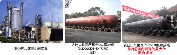 單元設(shè)備主要有: (DN600~2200,PN32Mpa)氨合成塔、氨分離器、氨蒸發(fā)器、油分離器、冷交換器、熱交換器、立式氨冷器、臥式氨冷器、軟水加熱器、淋灑式水冷器、套管式水冷器、臥式水冷卻器、廢熱回收器、水解塔、脫硫塔、精餾塔、洗滌塔、變換爐、再生塔、銅洗塔,30萬噸/年合成氨第一和第二廢熱鍋爐、高壓輔助鍋爐A、B、C、D管組、合成氣冷凝冷卻分離器、中壓氣提塔、開工加熱爐等。