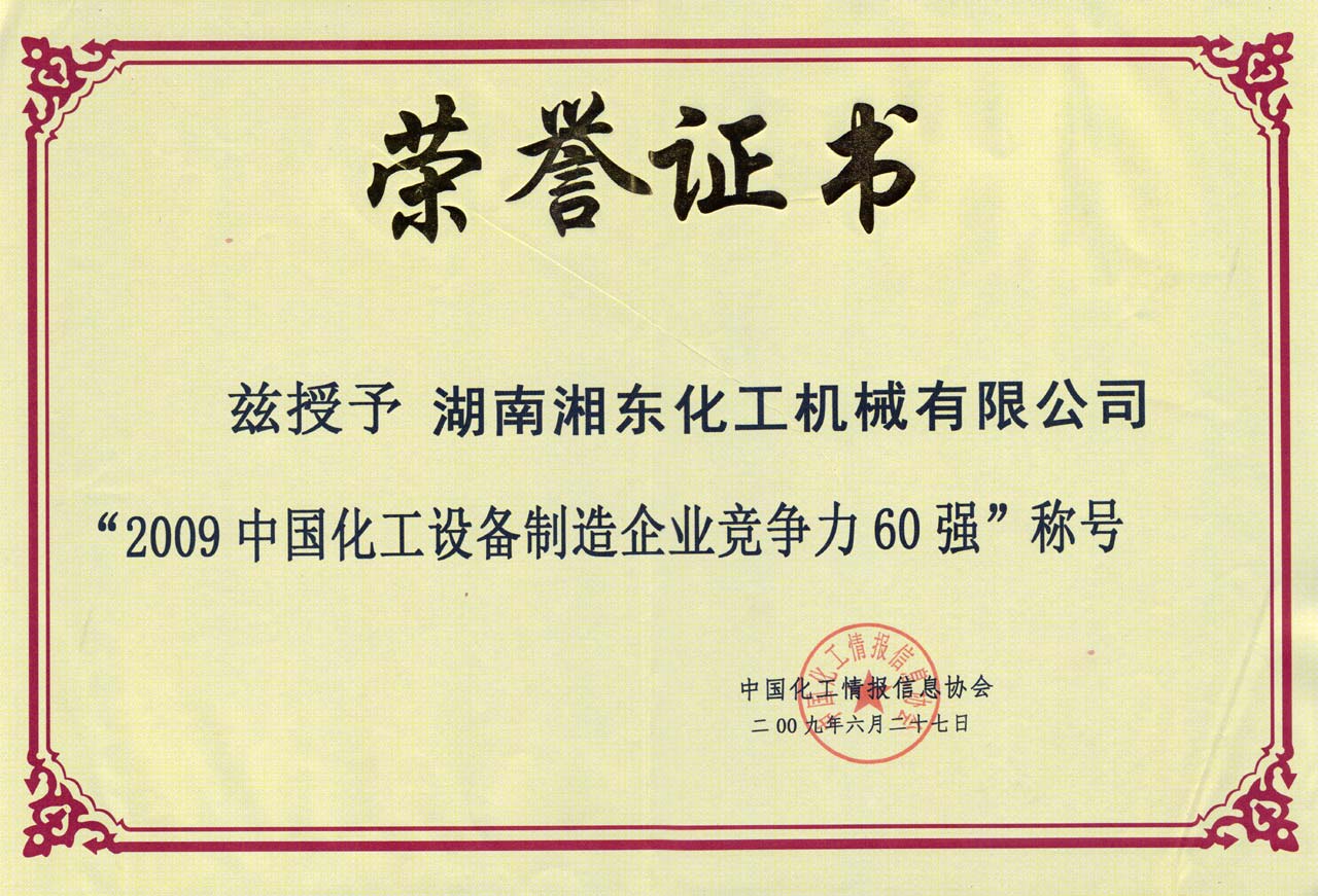 中國(guó)化工設(shè)備制造企業(yè)競(jìng)爭(zhēng)力60強(qiáng)