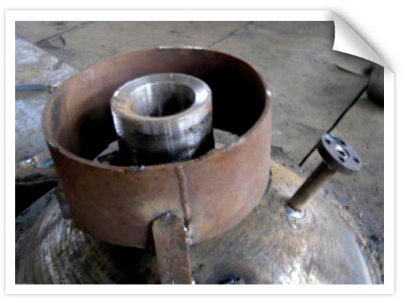 我公司生產(chǎn)的設備有很多封頭的頂部都焊有加工好帶螺紋的接管,因螺紋凸出在外,在生產(chǎn)中,稍不注意,就會把螺紋碰壞,把接管碰彎,造成報廢,而導致返工。如何保護接管和螺紋,已成為生產(chǎn)中的一道工序,不銹鋼分廠要求職工在生產(chǎn)中嚴格按照生產(chǎn)紀律的有關規(guī)定進行生產(chǎn),在焊有螺紋接管或焊有接管的部位,外加點焊一個凸圈,高于接管,加以保護,這樣以來,既保障了生產(chǎn)進度,也確保了產(chǎn)品質量,取得了一舉兩得的好效果。
