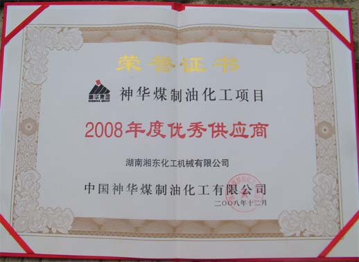 5月25日,從北京中國神華集團(tuán)傳來喜訊,我公司獲得中國神華煤制油化工項(xiàng)目2008年度“優(yōu)秀供應(yīng)商”稱號。