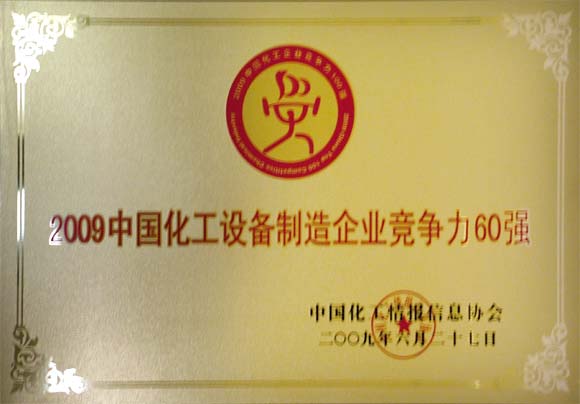 6月27日,湖南湘東化工機械有限公司被中國化工情報信息協(xié)會授予“2009年中國化工設(shè)備制造企業(yè)競爭力60強”稱號。
