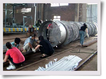 湖南湘東化工機(jī)械有限公司為天津渤海化工有限責(zé)任公司天津堿廠制造的煤氣換熱器等8臺(tái)設(shè)備,由于焊接技術(shù)要求高,焊接工作量是平常焊接的2.5倍,而且2萬(wàn)根鋼管要穿,4萬(wàn)個(gè)鋼管口要焊接,時(shí)間緊任務(wù)重,于2009年8月14日開(kāi)始,公司上下齊心協(xié)力搶任務(wù),全體機(jī)關(guān)人員分批下車間穿管子,做到本職工作和生產(chǎn)任務(wù)兩不誤。