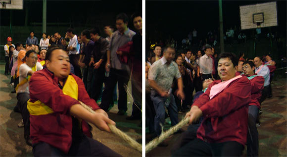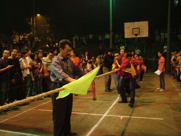 2009年10月17日晚,湖南湘東化工機(jī)械有限公司舉行職工拔河比賽,豐富職工業(yè)余生活,培養(yǎng)職工團(tuán)隊(duì)意識(shí),增強(qiáng)職工隊(duì)伍凝聚力。全公司9個(gè)組162名選手參賽,經(jīng)過(guò)激烈地角逐,容器分會(huì)奪取冠軍,金工分會(huì)和汽輪機(jī)分會(huì)獲第二名,鍛壓分會(huì)、生產(chǎn)分會(huì)、經(jīng)營(yíng)技術(shù)分會(huì)獲第三名。(王慧卉)