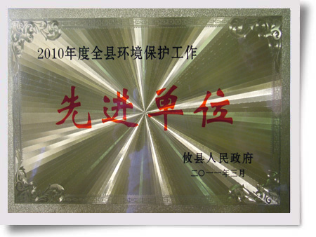 近日,公司被縣人民政府評(píng)為2010年度全縣環(huán)境保護(hù)工作先進(jìn)單位。