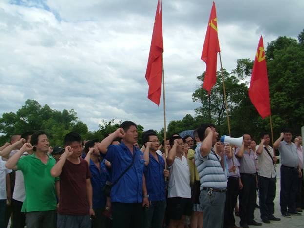 2012年6月30日,驕陽(yáng)似火,為紀(jì)念中國(guó)共產(chǎn)黨建黨91周年,湖南湘東化工機(jī)械有限公司組織本公司全體黨員到革命老區(qū)茶陵開展紅色教育活動(dòng),本次活動(dòng)主題:在茶陵烈士公園重溫入黨誓詞,到工農(nóng)兵政府聆聽革命前輩的故事,登云陽(yáng)山尋找英雄壯士的足跡。借此緬懷革命先烈的豐功偉績(jī)、弘揚(yáng)先烈精神。