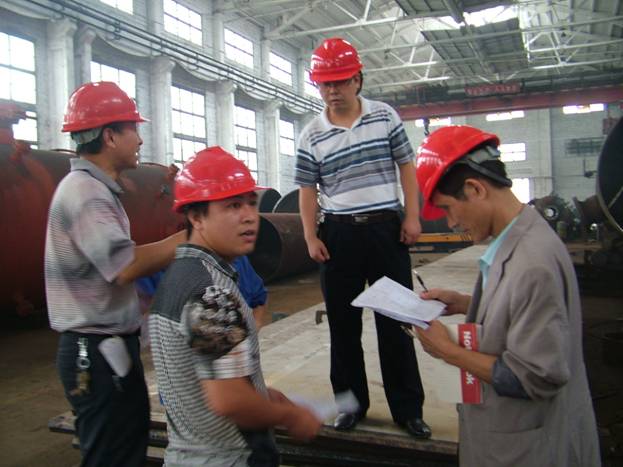 為強(qiáng)化對承壓類特種設(shè)備制造單位和制造監(jiān)督檢驗(yàn)機(jī)構(gòu)的監(jiān)管,確保特種設(shè)備制造質(zhì)量,根據(jù)湖南省質(zhì)量技術(shù)監(jiān)督局《關(guān)于對承壓類特種設(shè)備制造單位進(jìn)行現(xiàn)場安全監(jiān)督檢查的通知》湘質(zhì)監(jiān)函[2012]351號文件,2012年9月26日-27日,湖南省技術(shù)監(jiān)督局黃擁軍、蘇桔平、傅勁清、何鋼一行4人在市、縣質(zhì)量技術(shù)監(jiān)督局有關(guān)人員的陪同下來我公司檢查,檢查組對我公司許可資格、資源條件、質(zhì)量管理、檔案管理、現(xiàn)場管理、產(chǎn)品質(zhì)量等進(jìn)行了認(rèn)真檢查,檢查組認(rèn)為我公司機(jī)械加工制造能力較強(qiáng),對我公司質(zhì)保體系運(yùn)行情況給予了充分肯定,因公司目前生產(chǎn)分廠在制品較多,對生產(chǎn)現(xiàn)場在制品擺放提出了中肯的建議。